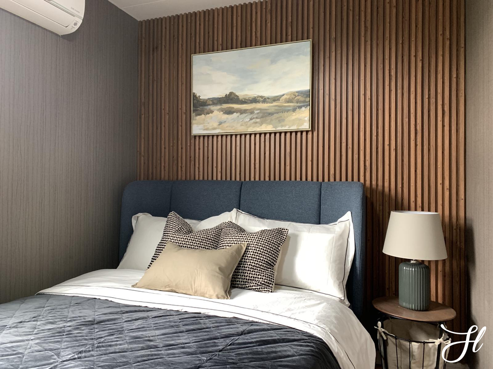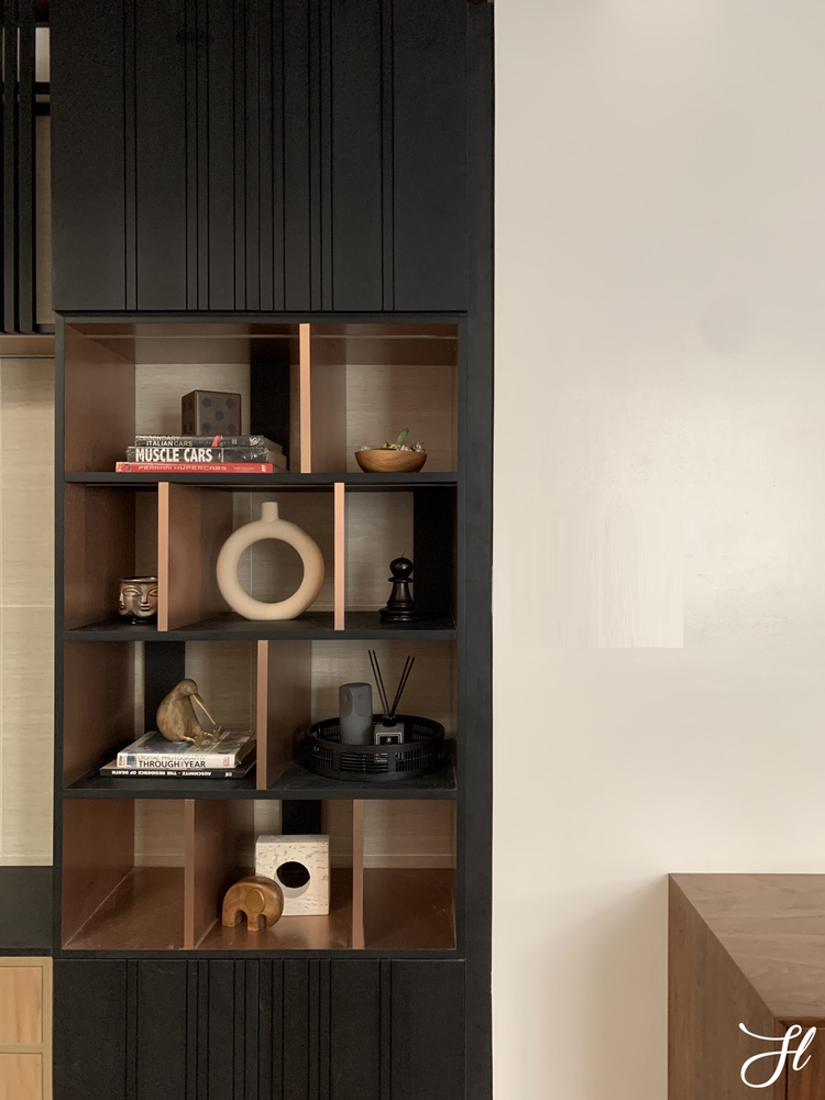 The living area serves as the heart of the home, blending raw finishes with splashes of color and curated décor that give warmth and energy to the industrial framework. Personally, the house is already beautiful as it is, so we decided to divide the areas into different types of services. The bedrooms are under our design package while the outdoor, lanai, office, and living are under the styling only service. This gave our client better option according to their requirements.