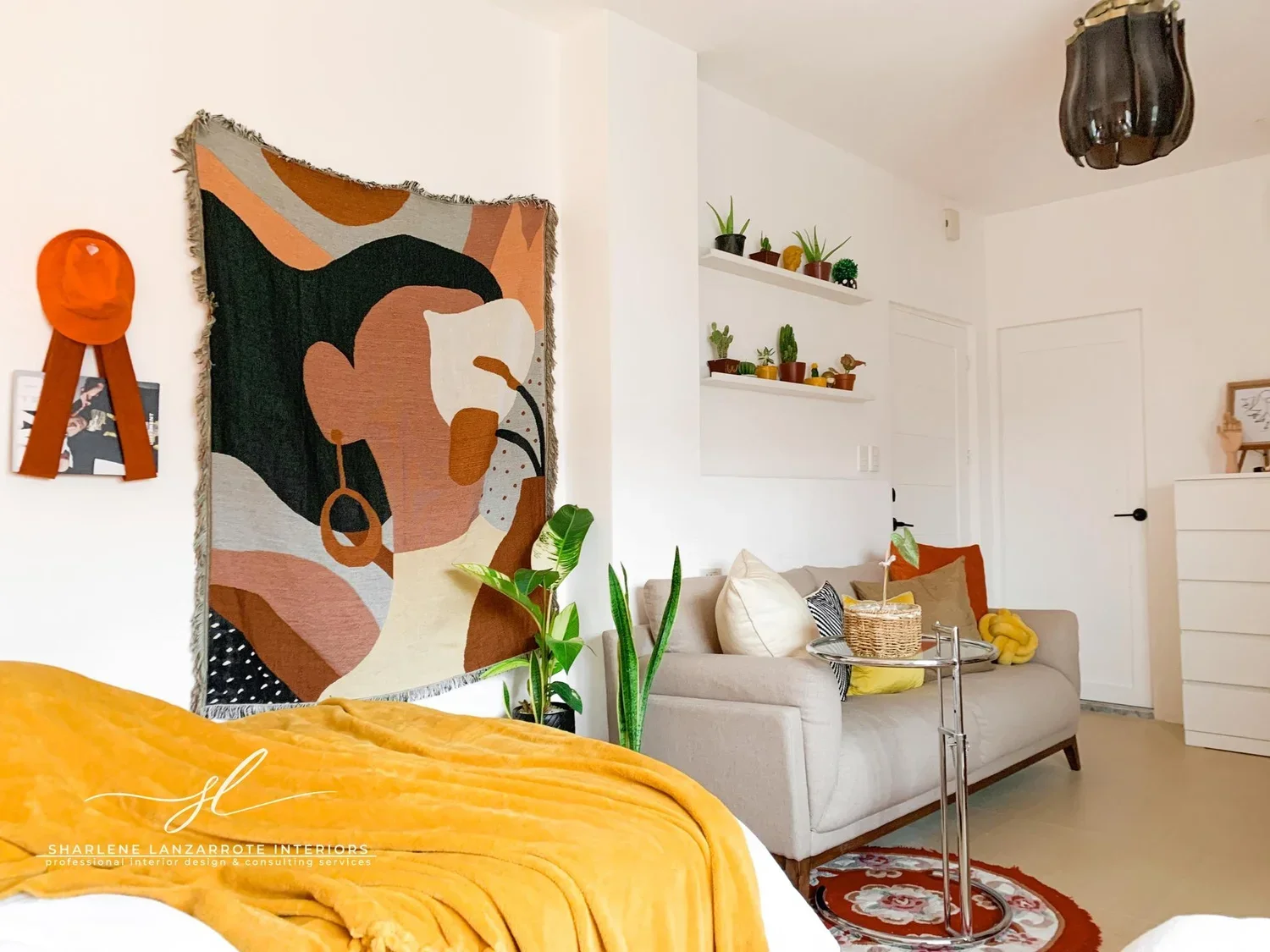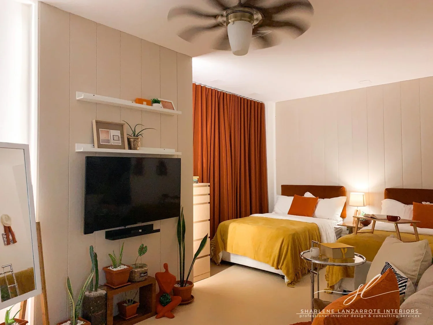 Terracotta Tones is a 24sqm renovation project that brings warmth and personality into a compact space through a boho-chic inspired aesthetic. The design combines earthy hues, cozy textures, and eclectic touches to create a space that feels both stylish and grounded. Soft beige walls provide a calm backdrop for the rich terracotta accents seen in the headboards, curtains, and decorative pieces—tying the entire room together in a cohesive palette inspired by nature and comfort.